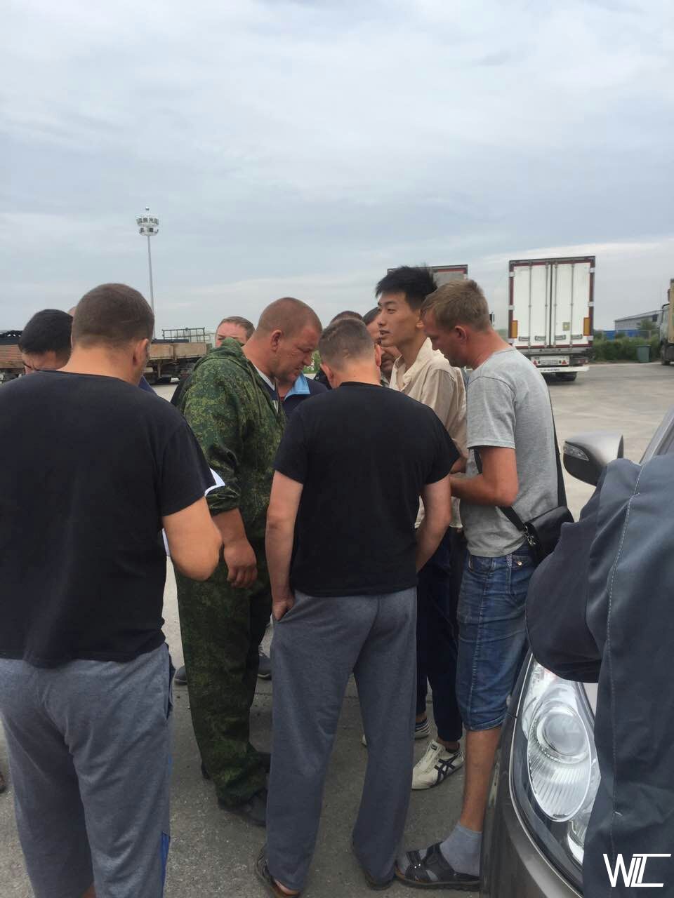 工作人员在货场处理准备从公路口岸出口的货物相关事宜